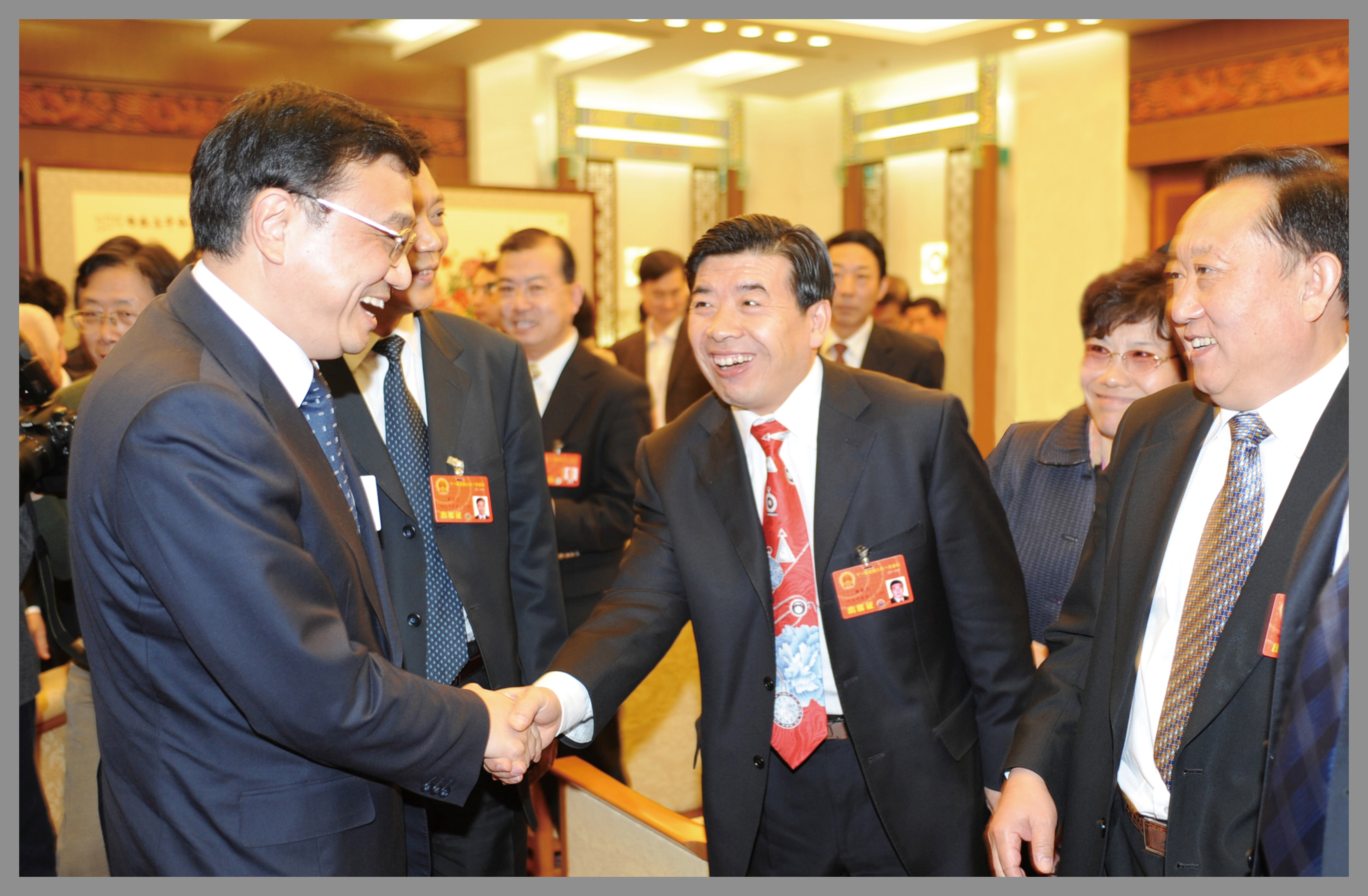 時(shí)任中央政治局常委、中央紀(jì)委書(shū)記王岐山與楊建忠董事長(zhǎng)親切握手